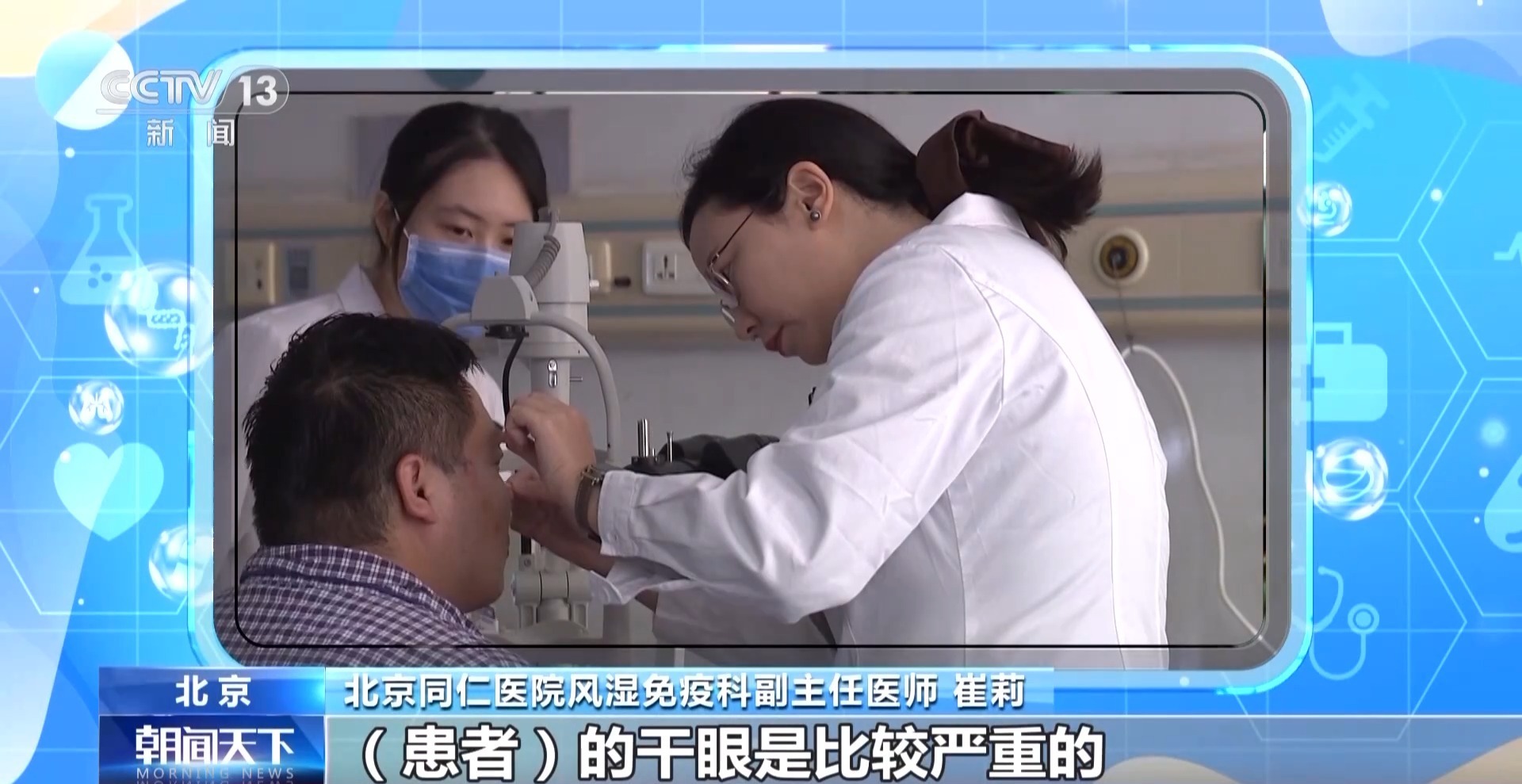 崔莉:患者的干眼是比较严重的,没有泪液的任何分泌。口干的程度可能导致进食的时候都不能下咽,没有唾液的滋养,牙齿也会频繁出现龋齿情况。